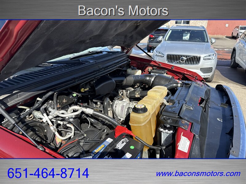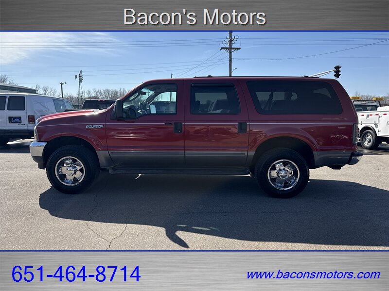 2004 Ford Excursion XLS finished in Toreador Red Metallic with a Medium Parchment cloth interior. Powered by the Triton 5.4L V8 producing approximately 255 hp and 350 lb-ft of torque, this Excursion offers the torque and chassis strength expected from Ford’s heavy-duty SUV platform. It has been driven sparingly — under 83,000 miles total, averaging under 4,000 miles per year — and is in excellent overall condition with a clean CARFAX report.