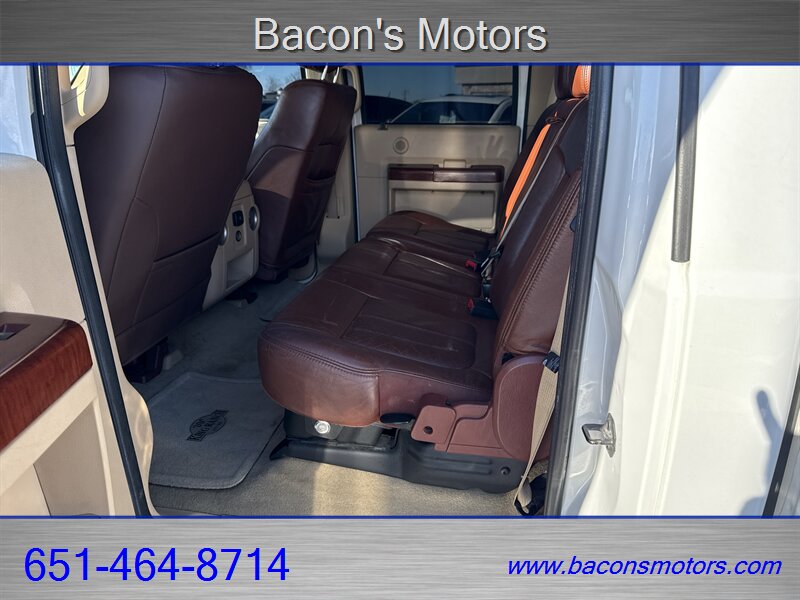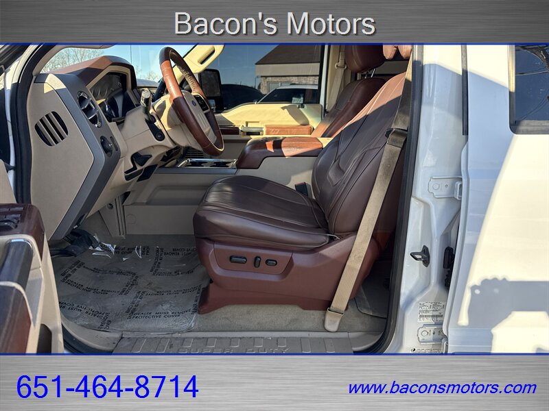 This 2012 F-250 King Ranch combines the heavy-duty capability expected from the Super Duty line with upscale King Ranch appointments. The 6.2L flex-fuel V8 provides strong low-end torque for towing and hauling, and this example includes towing-oriented equipment to make it a practical workhorse: 3.73 electronic locking rear axle and a factory-installed gooseneck hitch kit. The truck is finished in Oxford White with Pale Adobe Metallic accents and fitted with Adobe premium leather King Ranch seating and trim. It has been well maintained, shows excellent overall condition, and the CARFAX is clean.