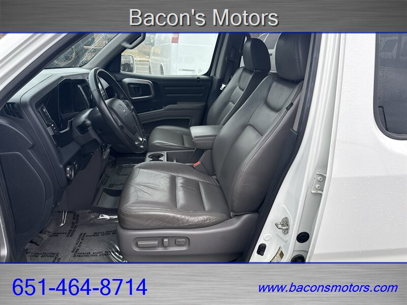 Dressed in a striking Taffeta White exterior, the Ridgeline exudes a classic, clean look that is sure to turn heads. The spacious gray leather interior offers a touch of luxury, providing both comfort and durability for all passengers.