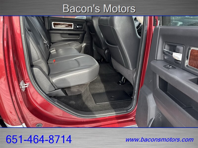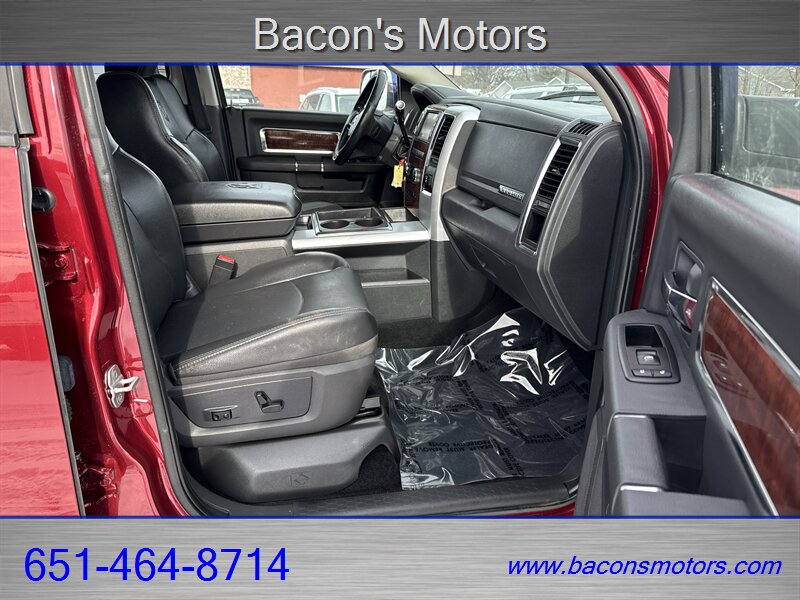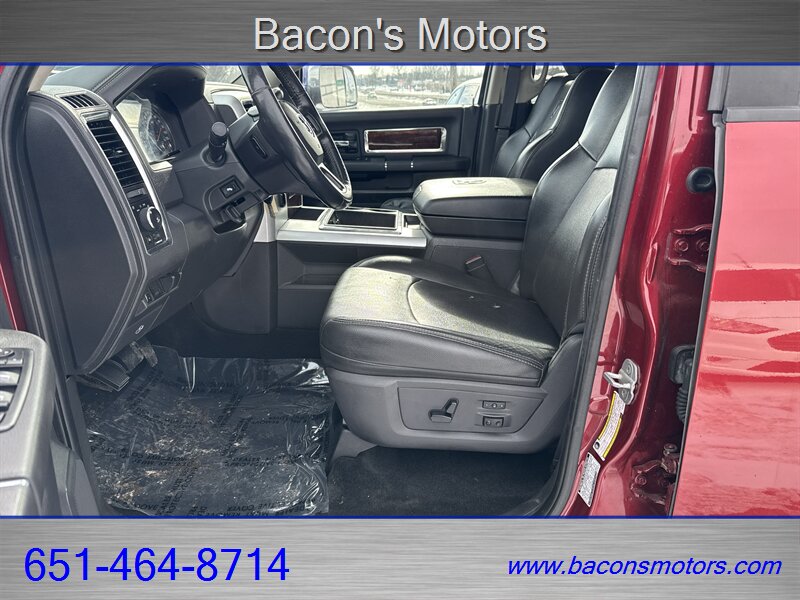 - Seating and trim: Laramie trim typically includes upgraded seating surfaces and premium interior trim; this truck is equipped with Dark Slate Gray leather seating for a refined cabin feel.
