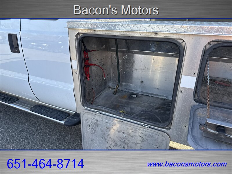 The exterior of this F-350 is presented in a classic White finish, which not only adds to its durability but also enhances its professional appearance. The body is in excellent condition, showcasing Ford's commitment to quality and performance.