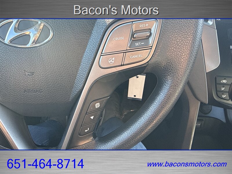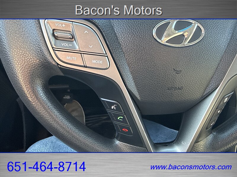 This 2015 Santa Fe Sport is powered by a 2.4L inline-4 engine that produces 190 horsepower and 181 lb-ft of torque, paired to a six-speed automatic transmission. Front-wheel drive is standard with an all-wheel drive system available from the factory. The EPA fuel economy for the 2.4L model is approximately 20 MPG city and 27 MPG highway.