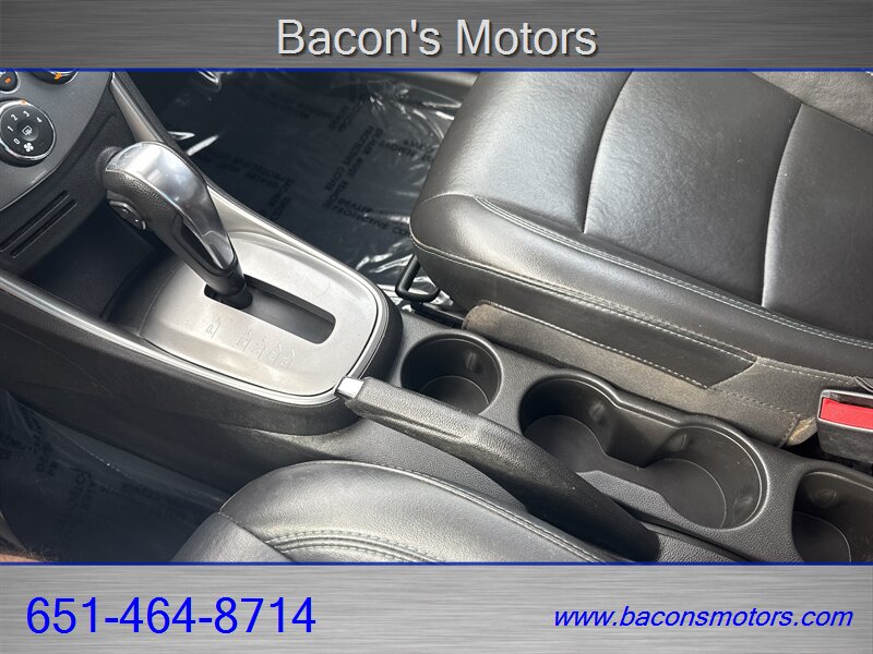 This 2016 Chevrolet Trax LTZ comes equipped with a powerful Ecotec 1.4L Turbo I4 engine that delivers 138hp and 148ft. lbs. of torque. The exterior is finished in a sleek Cyber Gray Metallic color, complemented by a luxurious Jet Black leather interior.
