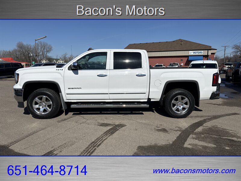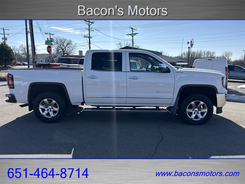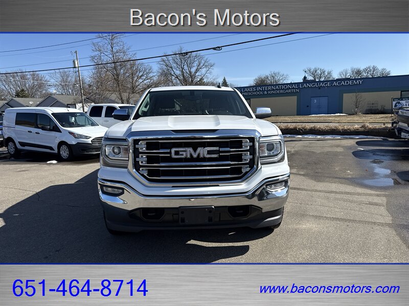 This 2017 GMC Sierra 1500 SLT is powered by the EcoTec3 5.3L V8 producing 355 hp and 383 lb-ft of torque. The truck is finished in Summit White with a Jet Black leather interior and is in excellent overall condition. It has a clean CARFAX report.