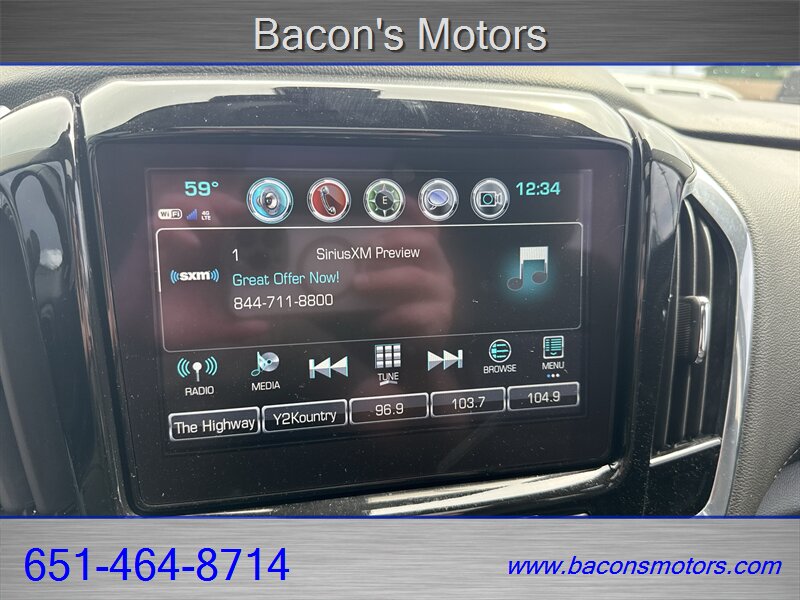 Infotainment and connectivity are handled through Chevrolet’s color touchscreen MyLink system, which supports Bluetooth hands-free calling and audio streaming and is compatible with Apple CarPlay and Android Auto. The Premier trim often includes a premium audio setup, and standard telematics such as OnStar with available 4G LTE Wi-Fi allow connected services and emergency support. Safety equipment includes an array of airbags, ABS with electronic brake control, traction and stability control systems, tire pressure monitoring and a rear-vision camera. Higher-level driver-assist technologies—commonly factory-fitted on Premier—include Blind Zone Alert with Rear Cross Traffic Alert and rear parking sensors; additional forward collision/ lane-keeping systems were available depending on the original factory options.