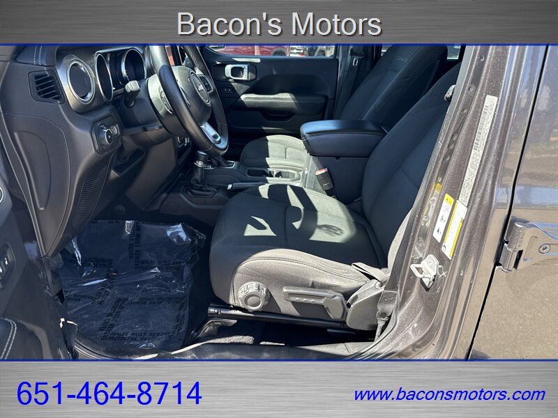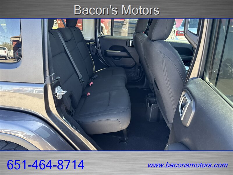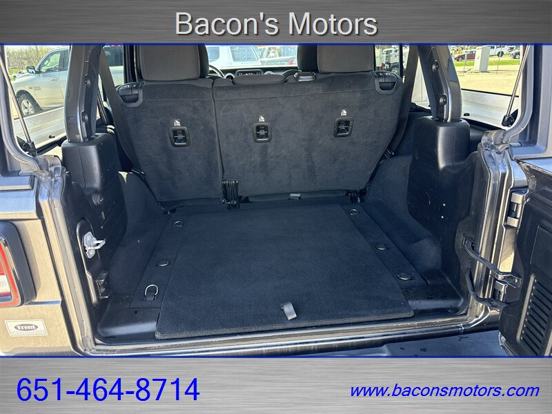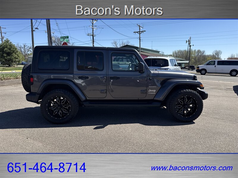 2019 Jeep Wrangler Unlimited Sahara — Granite Crystal Metallic Clear Coat exterior with Black cloth interior and the optional Black 3-piece hard top. Powered by the 2.0L Turbo I4 producing 270 hp and 295 lb-ft of torque, this four-door Wrangler Unlimited delivers strong on-road performance while retaining the model’s legendary off-road capability. It averages excellent mileage for its age with under 41,000 miles total (roughly less than 6,000 miles per year) and EPA ratings of approximately 22 MPG city and 24 MPG highway. The vehicle is in excellent overall condition and has a clean CARFAX.